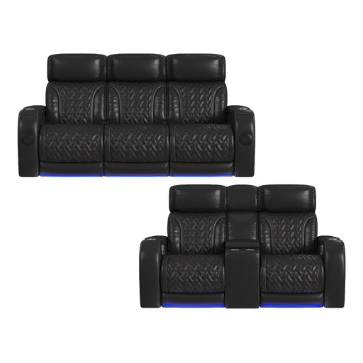 Original price $3,049.00 - Original price $3,049.00Original price$3,049.00$3,049.00 - $3,049.00Current price $3,049.00Prime Time - P3 Sofa With I Table, Reading Light, Heat, Massage, LED, And Speaker - Jett Black With Red Stitching