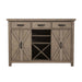 Adorn your home with the charming, warm, and inviting essence of the Yellowstone Server. Crafted with a textured finish that showcases the beauty of natural wood, its classic design evokes the simple elegance of a farmhouse retreat. This server has a centered wine rack, perfect for showcasing your favorite bottles, and sizeable cabinets and shelving, providing stylishly spacious storage. With its sturdy metal handled drawers, charactered wood, and functional design, the Yellowstone Server becomes a statement piece in your treasured dining space.