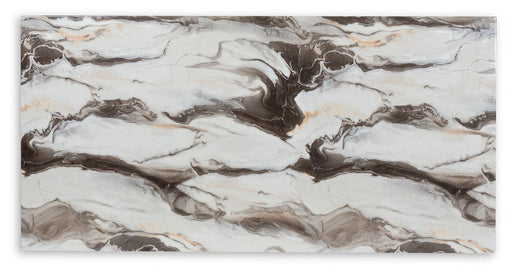 Signature Design by Ashley®This dining table reflects your highly contemporary point of view. Its faux marble tabletop and base are a feast for the senses—white contrasts aga...
