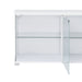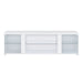 The Chandra 70" TV Stand in a glossy white finish is the perfect addition to any modern living room. The stand features RGB LED lights that can be adjusted to create the perfect ambiance for any occasion. Two translucent cabinets provide ample storage space for media accessories, while open glass shelving allows you to display decorative items or store devices. This sleek and contemporary TV stand not only enhances the aesthetic of your space, but also provides functionality and organization for all your entertainment needs. The Chandra TV Stand is the perfect way to elevate the ambiance of your home.