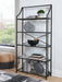 This bookcase proves that traditional designs are simply timeless. Five spacious glass shelves offer plenty of room to display today's meaningful mementos and awesome accessories. With a classic antiqued black finish, it’s just got that ageless appeal.