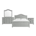 Enhance the look and feel of your bedroom with the Kona Panel Bedroom Set. This set includes features chevron pattern detailing for a touch of elegance. The curved headboard design add traditional flair to your space, while the nightstand comes equipped with a convenient USB port for easy charging. With knob and cup pull black hardware, bun feet, and top drawers lined with felt, this bedroom set combines style with functionality. Upgrade your decor with the Kona bedroom collection and give yourself a comfrotable night's rest with an organized and stylish space.