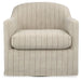 Create a cozy corner that moves with you. This accent chair's smooth 360-degree swivel allows you to effortlessly turn to join the conversation or reach for a nearby drink. With light and breezy striped fabric and a tailored slip cover design, this stylish piece beautifully complements casual decor.