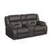The Engage Living Room Set enhances your home with its grand presence. Reclining function enhances comfort during your precious moments of repose, and the fully upholstered frames in durable faux leather elevate any space with tasteful refinery. Pillow top arms are ideal for lounging, while spring seats and supportive foam cushioning cradle you in comfort. The loveseat’s 2 metal cupholders and storage console mark thoughtful design and help keep your living room essentials comfortably within reach. For a versatile and lavish addition to your home, the Engage Living Room Set effortlessly combines comfort and sophistication.