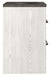 Cool, clean and casually modern. This nightstand's wispy whitewash and gray finish sets the tone for your calming sanctuary. Large linear pulls add dimension and authenticity. Two smooth-gliding drawers neatly accommodate your bedside needs.